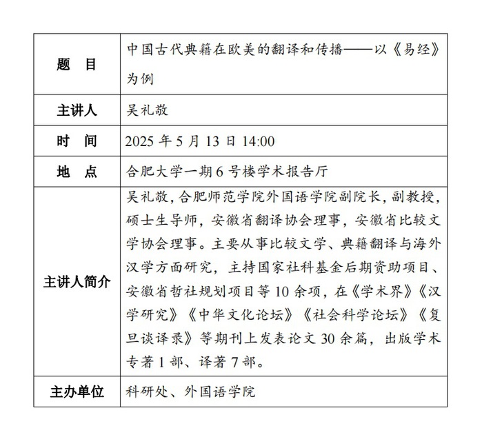 【善思讲坛】中国古代典籍在欧美的翻译和传播——以《易经》为例