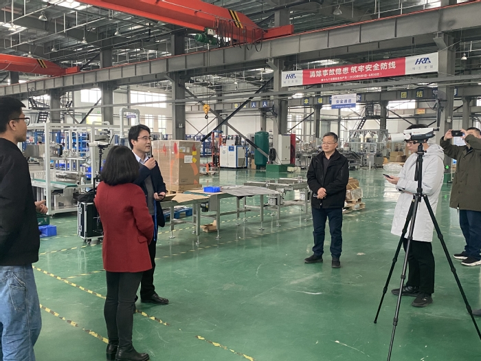 在C3栋科研楼,哈工大机器人集团合肥有限公司总经理李旭东详细介绍了6个研究所的相关情况,并重点展示了机器人的各种功能。最后直播转场到合肥哈工龙延智能装备有限公司的生产厂区,哈工龙延是我校优秀校友李新利创办的企业,它提供“智慧工厂”的解决方案、机器人物料搬运系统集成应用等,企业年销售额连续3年均在1.5个亿左右,是实习基地中的龙头企业。直播中,李旭东对同学们提出的问题一一作出解答。