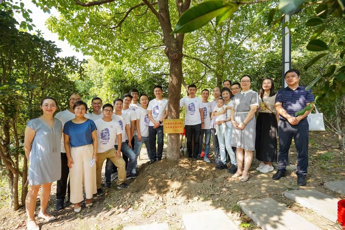 上午9点30分,校友一行来到行政楼边的“校友林”参加植树揭牌仪式。刘金平对校友的返校和捐赠表示热烈欢迎,她指出,“校友纪念树”是连接校友与母校的纽带,预示着共同成长、共同辉煌。希望校友们无论身在何方,始终心系母校,有空常回母校看看。校友陈铁龙在代表发言中表达了对母校辛勤培养和关心支持的感激之情,他将牢记“厚德、博学、善思、致用”的校训,在人生奋进路上与母校同向同行。仪式上,张伟颀与校友代表丁中原共同为“校友纪念树”揭牌。