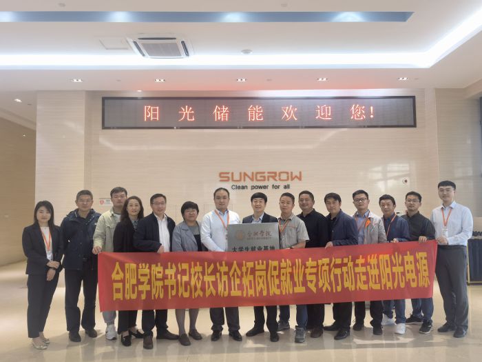 为扎实推进我校访企拓岗促就业专项行动,稳步推进我校毕业生就业工作,增强就业工作实效,5月12日下午,校党委委员、党委学生工作部部长朱涛一行赴阳光电源公司实地走访调研并举行大学生就业基地授牌仪式。校就业指导中心、先进制造工程学院、人工智能与大数据学院、经济管理学院、外国语学院相关领导老师参加了活动。