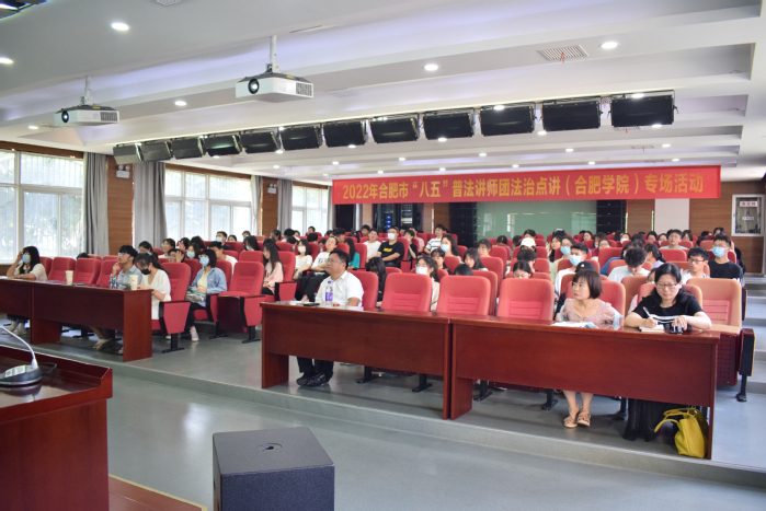 为深入学习宣传贯彻习近平法治思想,深入宣传以宪法为核心的中国特色社会主义法律体系,认真落实合肥市“八五”普法讲师团法治巡讲、点讲活动实施方案文件精神,进一步发挥普法讲师团在“八五”普法中的重要作用,学校党委高度重视,精心部署,党委宣传部、经济与管理学院共同举办2022年合肥市“八五”普法讲师团法治点讲(合肥学院)专场活动,提高普法的针对性和实效性,促进学校师生法律素质和学校法治治理水平提升。