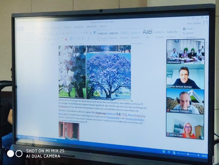 Schließlich stellte Prof. Dr. Andreas Bertram den an ihrer Hochschule gepflanzten Gesundheitsbaum vor, wünschte allen gute Gesundheit während der Epidemie und freute sich darauf, die Kommunikation und den Austausch mit Frau Prof. Dr. Wu Chunmei an der Universität Hefei oder der Hochschule Osnabrück weiter zu stärken.