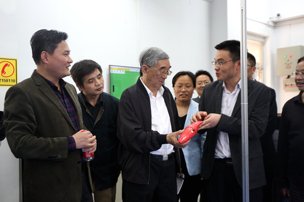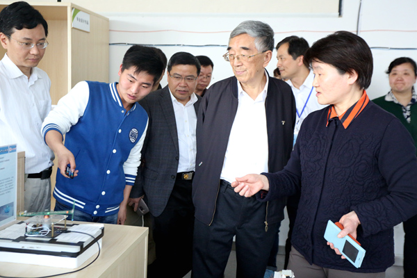 下午,朱院士一行人在蔡敬民的陪同下共同调研了电子信息与电气工程系、计算机科学与技术系以及艺术设计系。首先他们来到电子系共同参观了实验室、创新基地以及电子爱好者协会大学生工程实践与创新教育中心,在三楼会议室,电子系教授谭敏向朱高峰等人做了专业人才培养和课程改革方案汇报。在计科系三楼会议室,计科系主任许强从软件工程专业人才培养、构建模块化课程体系以及研究、改革的成果几个方面向来宾展示,汇报结束后朱高峰一行人参观了计科系的大学生创新基地,见到活灵活现的机器鱼时,朱高峰对其大为称赞。最后,蔡书记引领朱院士等人参观艺术设计系嵌入式实验室,艺术系系主任谢海涛向朱院士展示了安徽的四大名点设计的包装样品,并介绍了学生作品制作厅以及作品展示厅。