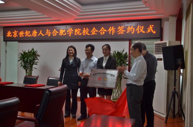 最后,依次进行了校企战略合作框架协议签订仪式、“合肥学院人才培养实践基地”、“唐人大讲堂”牌匾揭幕仪式及唐人赠与合肥学院100册《唐人旅游规划设计年鉴》仪式,并颁发客座教授聘书。