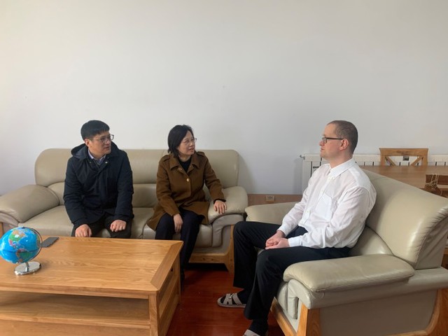 Am Vormittag des 17. Januar besuchte Universitätspräsidentin Wu Chunmeiden deutschen Experten Prof. Thomas Weise, der die Feiertage auf dem Campus verbrachte, um ihm ihre besten Wünsche für das Frühlingsfest zu übermitteln. Zhang Hui, Direktor des Büros für internationalen Austausch und Zusammenarbeit, begleitete sie bei dem Besuch.
