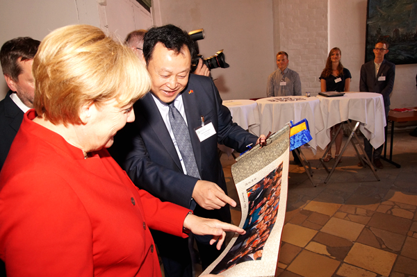 双方致辞后,默克尔与许琳等共同为孔子学院揭牌,这是默克尔本人及德国现任总理首次为孔子学院揭牌。