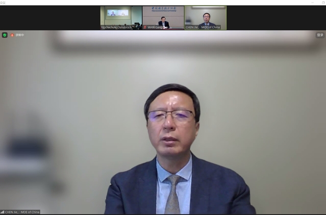 Chen Jie hoffte, dass die deutsch-chinesische Zusammenarbeit auf dem Gebiet der anwendungsorientierten Hochschulbildung den Zeitgeist erfassen und die potenzielle Zusammenarbeit erschließen sollte. Die soziale Grundlage müsse weiterentwickelt werden, um die Zusammenarbeit zu erweitern, und die gemeinsame wirtschaftliche Zusammenarbeit sollte die Herausforderungen bewältigen. Er hoffte auch, dass das 16. Symposium der chinesisch-deutschen anwendungsorientierten Hochschulausbildung ein neuer Anfang für die zukünftige Zusammenarbeit sein werde und dass die Bildung eine aktivere Rolle bei der Entwicklung der Beziehungen zwischen den beiden Ländern spielen könne.